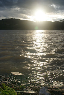 The blue stone cap is in two pieces, but each half is so heavy that it took a pulley system and five guys to get them to the top of the chimney. This is the same crew that topped the trees to open our view, so I guess they remembered how dissapointed I was that I didn't get to see the tree climber in action. Apparently these guys also noticed that I like to document our projects, so they brought a camera to the job-site specifically to take pictures for me! How nice is that?!?! Here are a few pictures from their camera